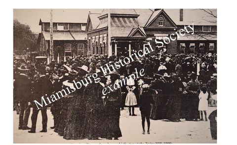 This photo is of Teddy Roosevelt, then a candidate for Vice President on the McKinley ticket, giving his campaign speech at Miamisburg's Hoover and Gamble Binder Works on North Riverview Avenue at the Sycamore Avenue bridge. Roosevelt was on his famous "whistle-stop" train tour in 1900.