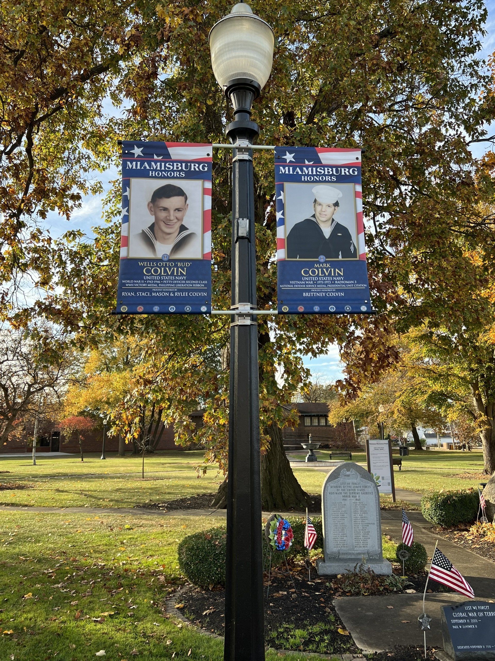 The first military tribute banners went up for a few weeks this fall in Veterans Memorial Park. Since then, we have received orders for over 20 more. The banners will be hung throughout the park from mid-May through Veterans Day every year. We have several of them displayed in the History Center.